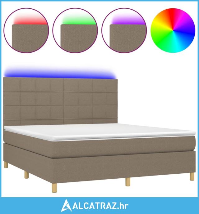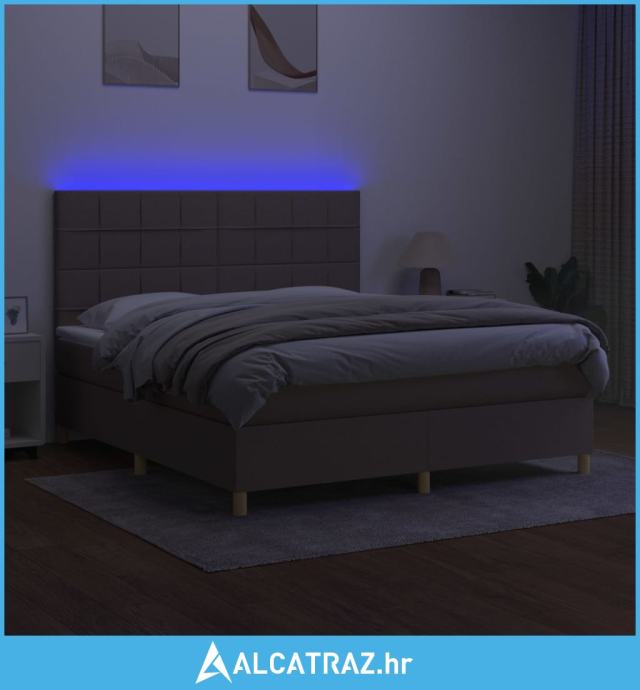 Krevet box spring s madracem LED smeđesivi 180x200 cm tkanina - NOVO