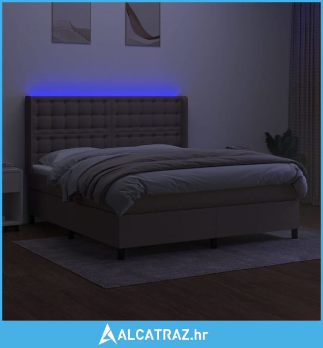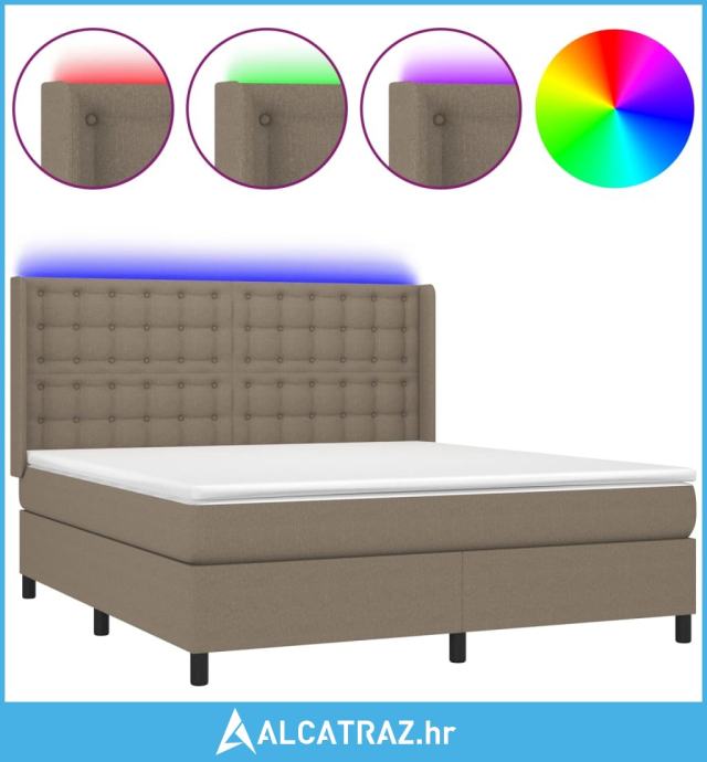 Krevet box spring s madracem LED smeđesivi 180x200 cm tkanina - NOVO