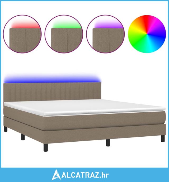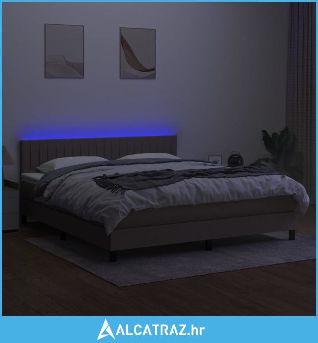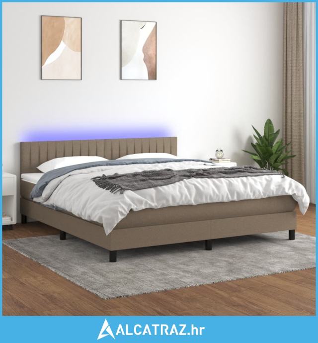 Krevet box spring s madracem LED smeđesivi 180x200 cm tkanina - NOVO