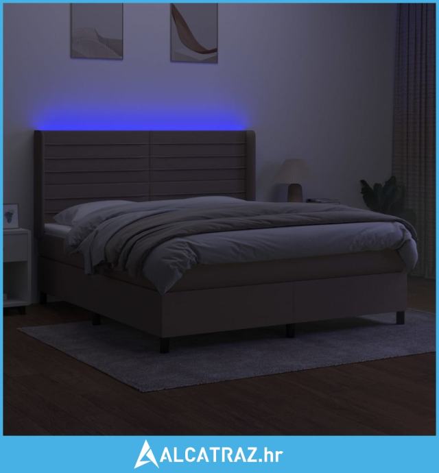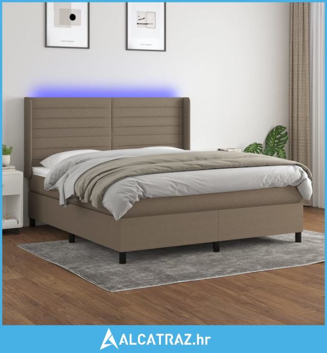 Krevet box spring s madracem LED smeđesivi 180x200 cm tkanina - NOVO