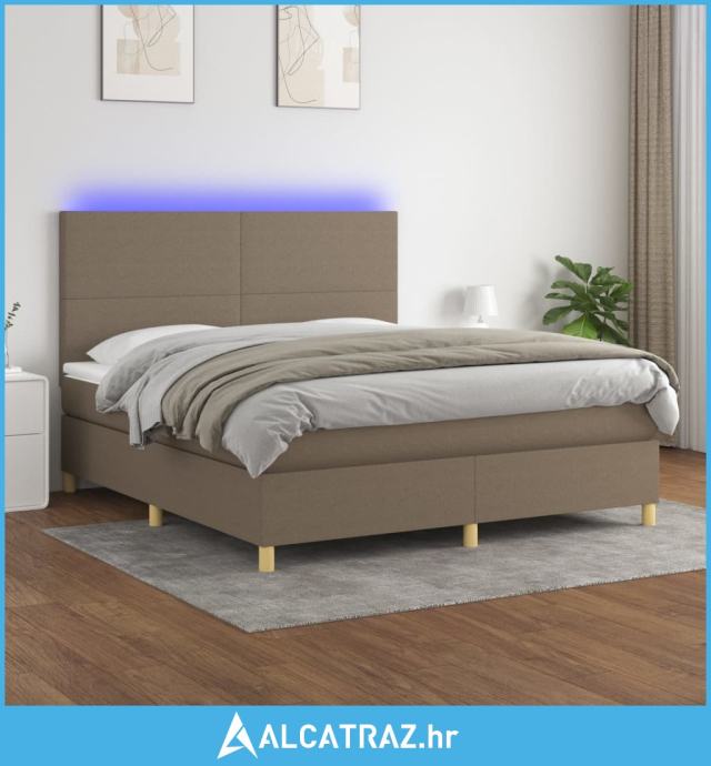 Krevet box spring s madracem LED smeđesivi 180x200 cm tkanina - NOVO