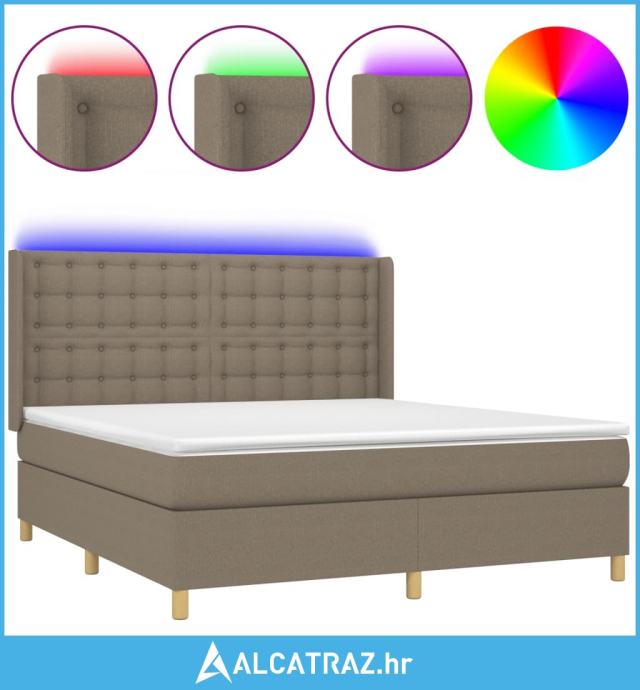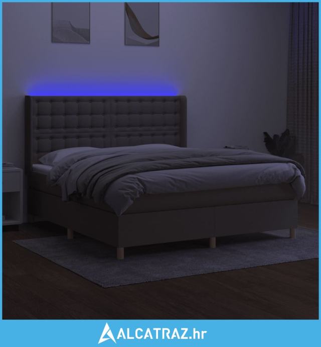 Krevet box spring s madracem LED smeđesivi 180x200 cm tkanina - NOVO