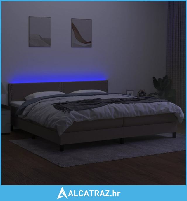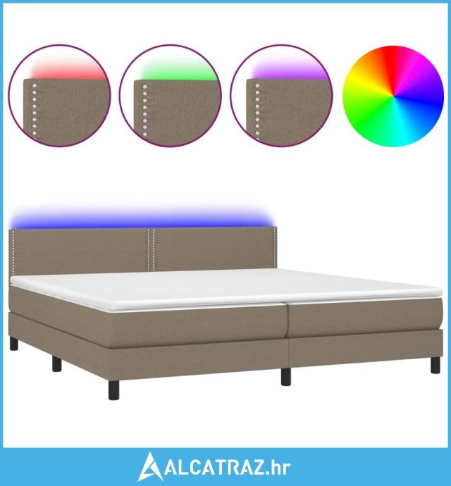 Krevet box spring s madracem LED smeđesivi 200x200 cm tkanina - NOVO