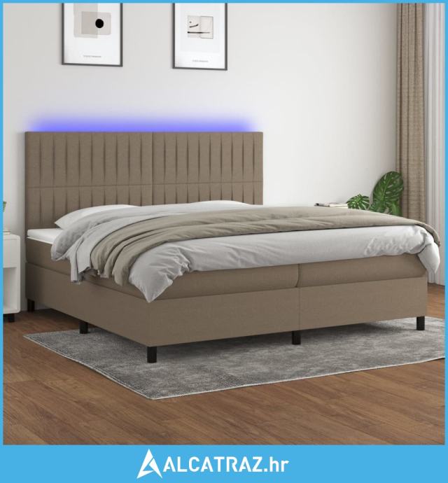 Krevet box spring s madracem LED smeđesivi 200x200 cm tkanina - NOVO