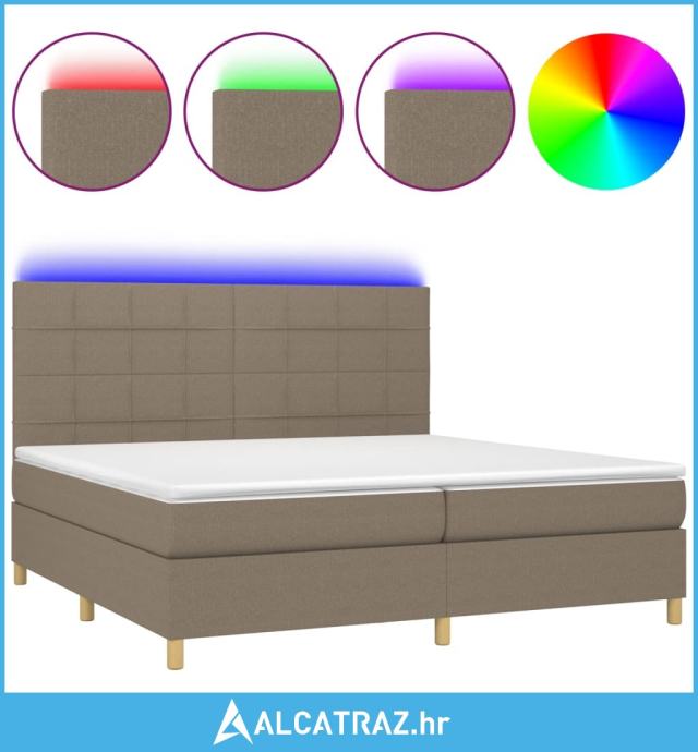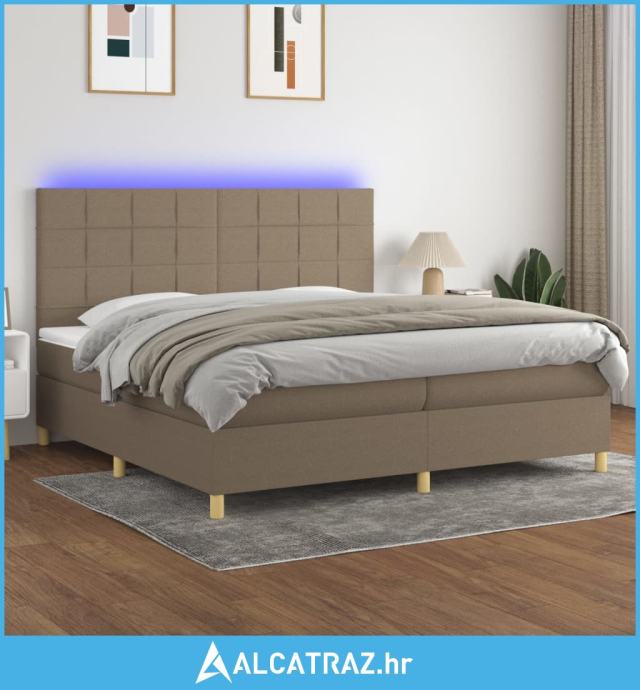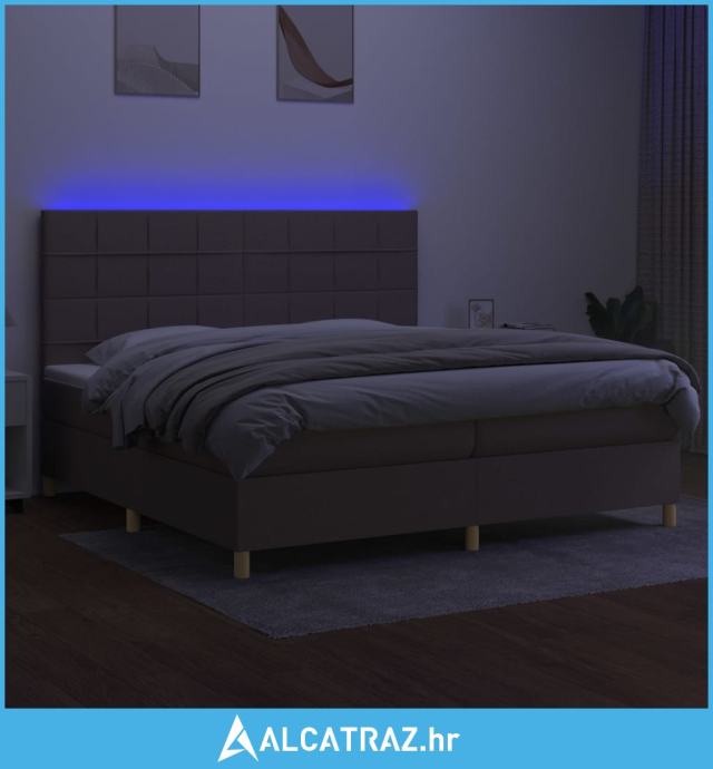 Krevet box spring s madracem LED smeđesivi 200x200 cm tkanina - NOVO