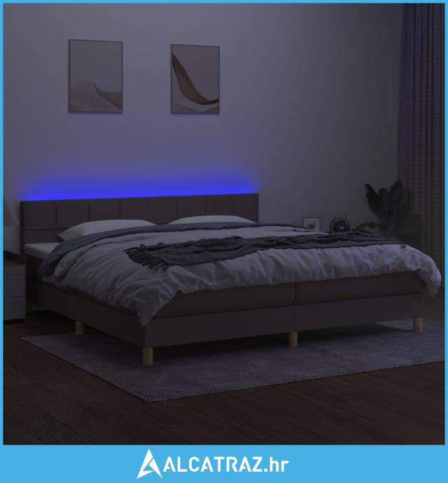 Krevet box spring s madracem LED smeđesivi 200x200 cm tkanina - NOVO