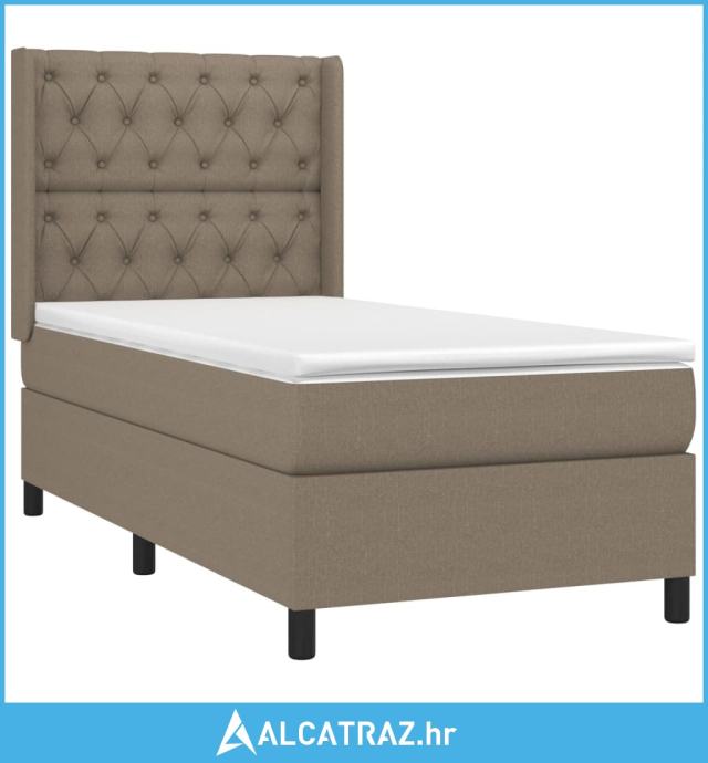 Krevet box spring s madracem LED smeđesivi 80 x 200 cm tkanina - NOVO