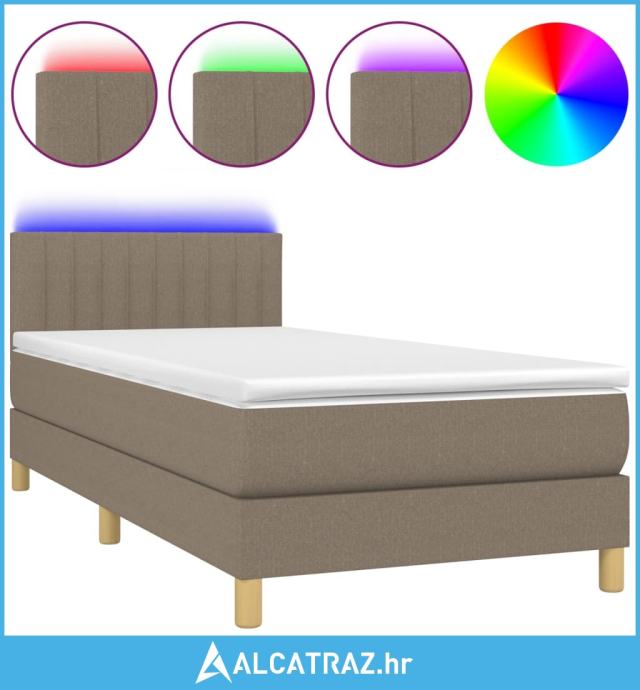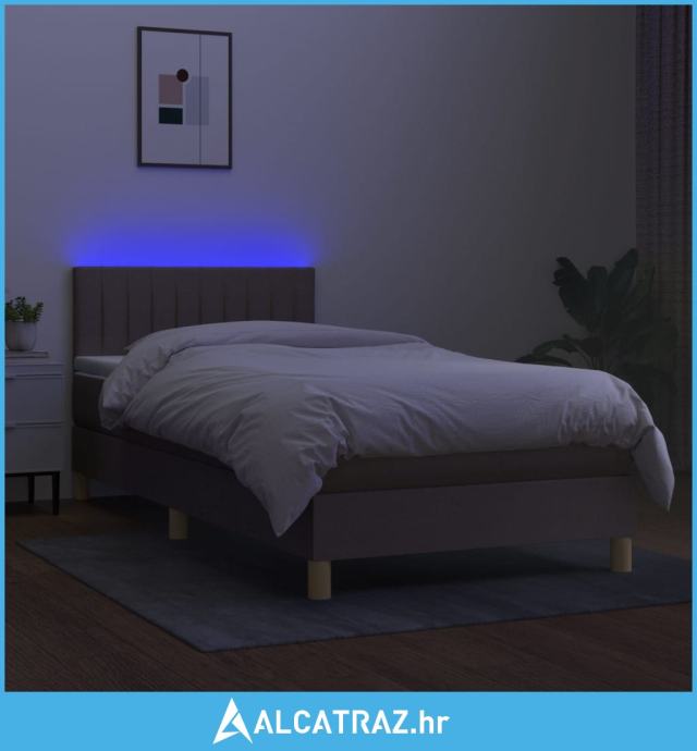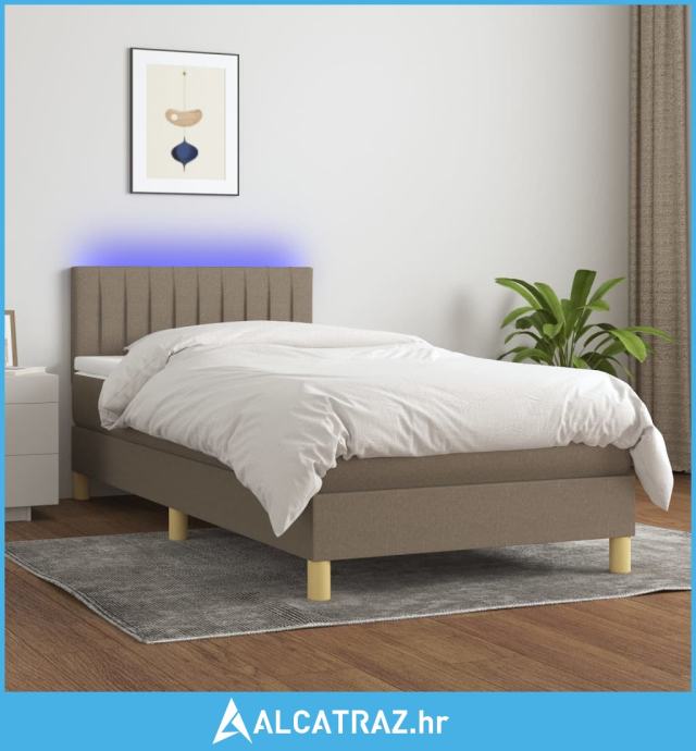 Krevet box spring s madracem LED smeđesivi 80 x 200 cm tkanina - NOVO