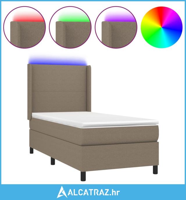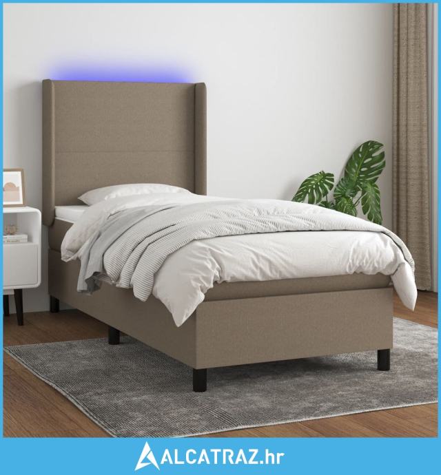 Krevet box spring s madracem LED smeđesivi 80 x 200 cm tkanina - NOVO