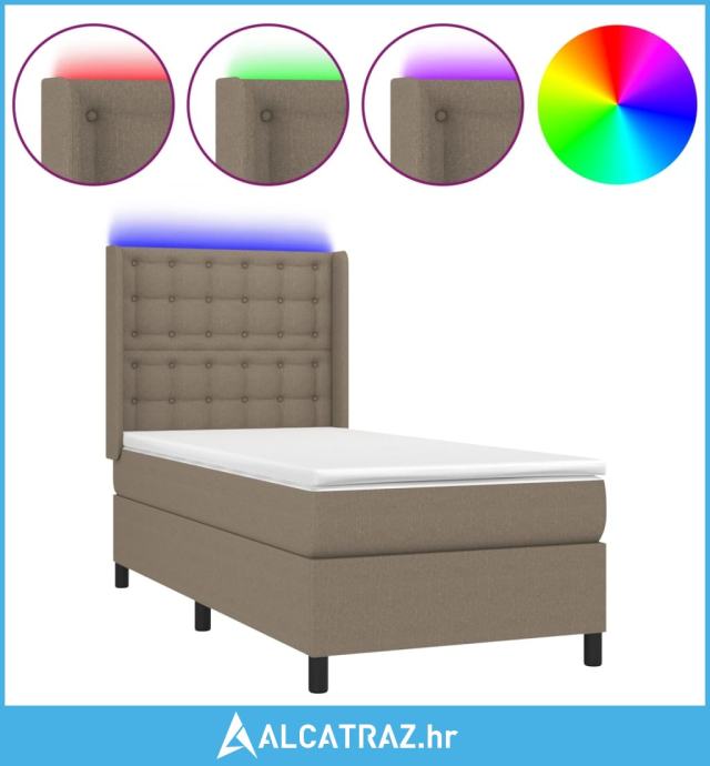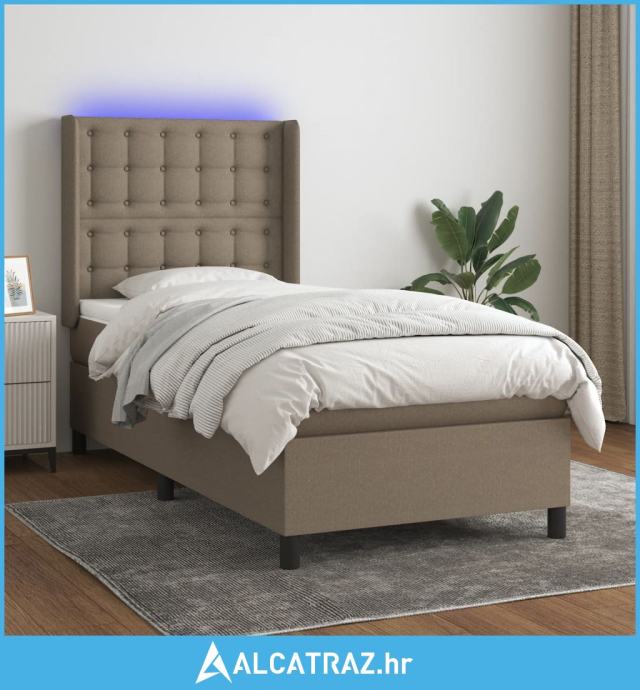 Krevet box spring s madracem LED smeđesivi 80 x 200 cm tkanina - NOVO