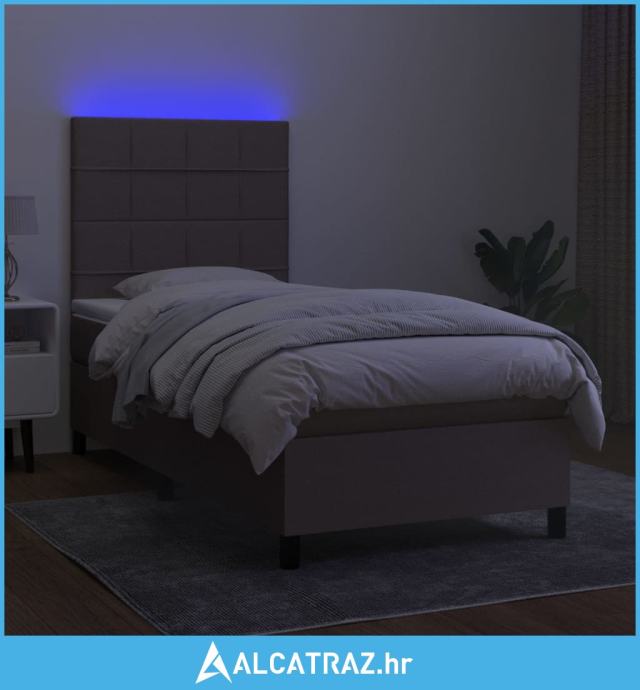 Krevet box spring s madracem LED smeđesivi 90x190 cm tkanina - NOVO
