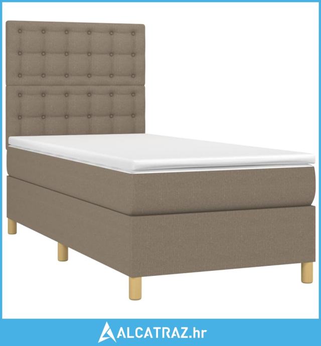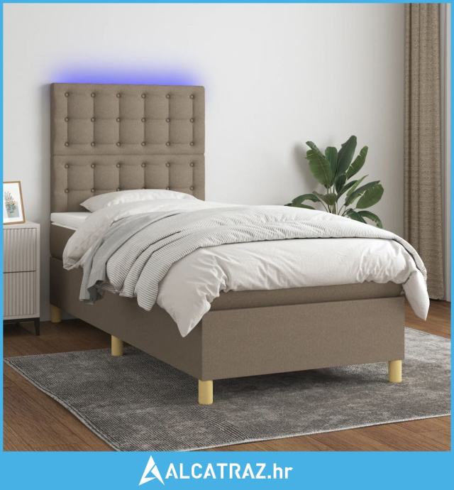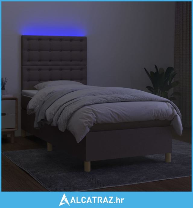 Krevet box spring s madracem LED smeđesivi 90x200 cm tkanina - NOVO