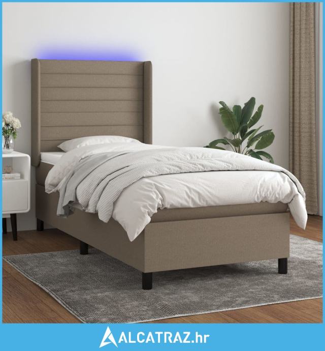 Krevet box spring s madracem LED smeđesivi 90x200 cm tkanina - NOVO