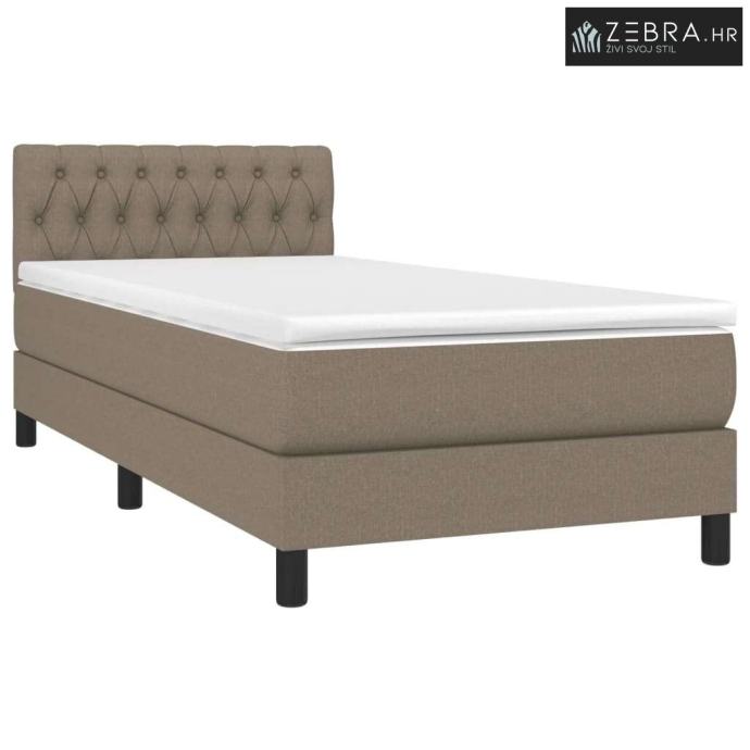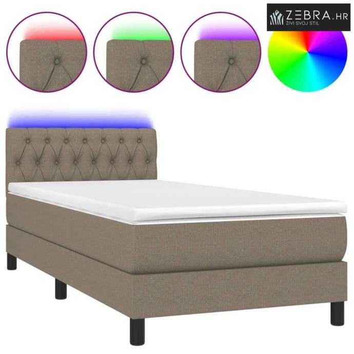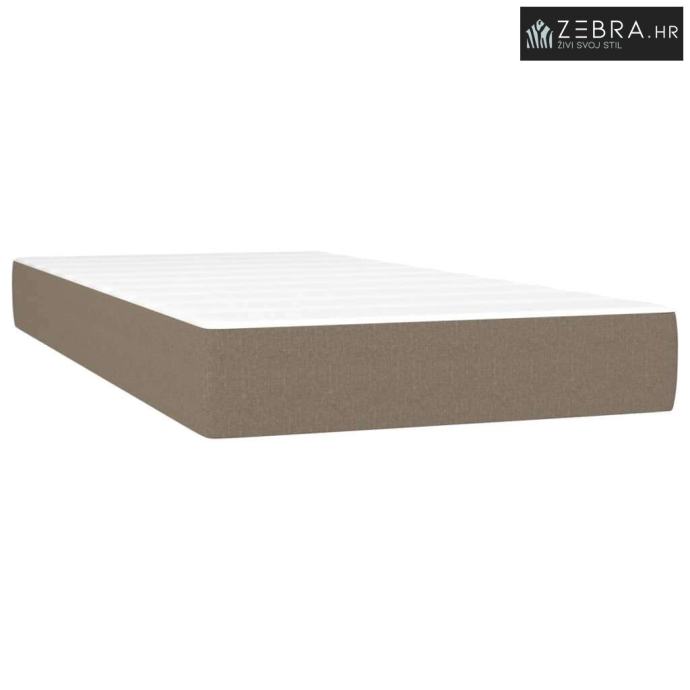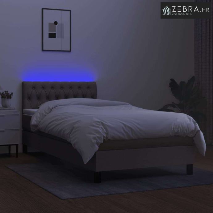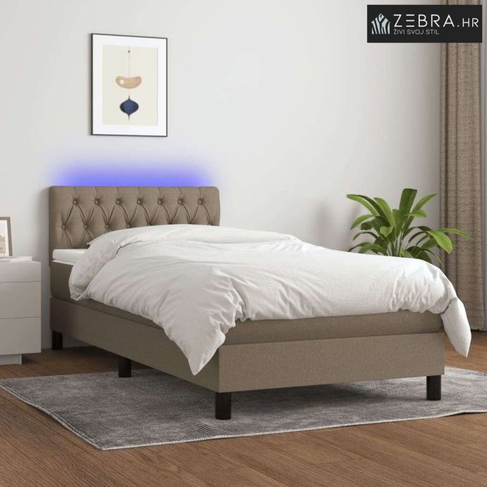 Krevet box spring s madracem LED smeđesivi 90x200 cm tkanina - Sivo-sm