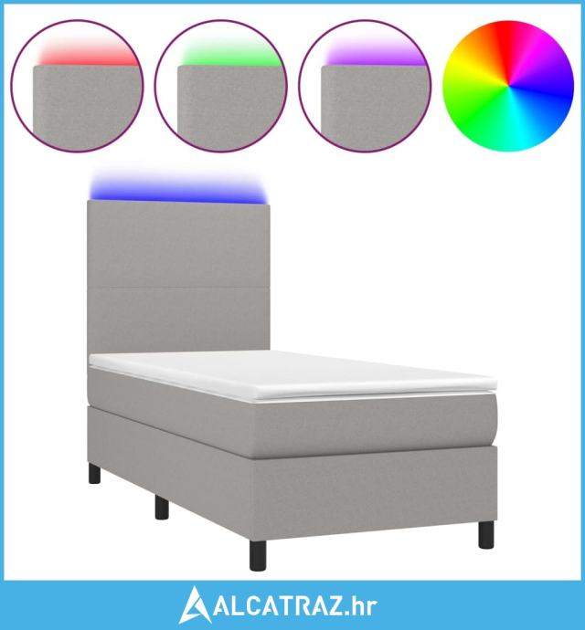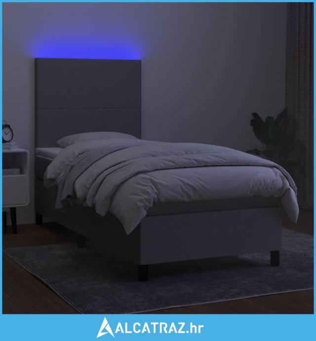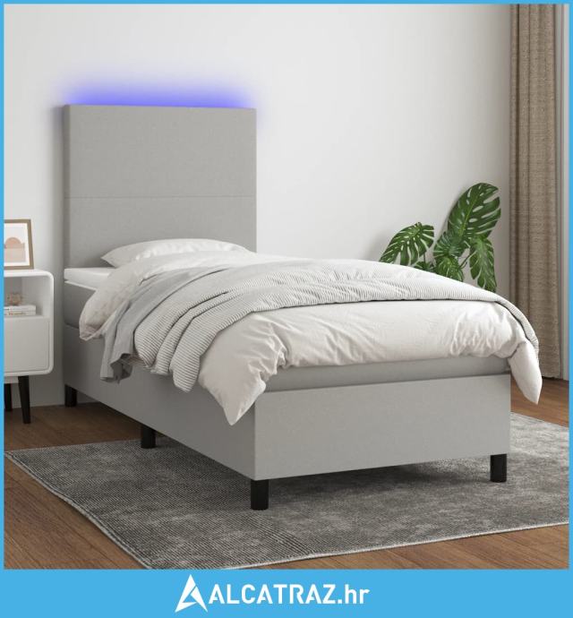 Krevet box spring s madracem LED svjetlosivi 100x200 cm tkanina - NOVO
