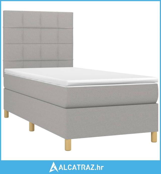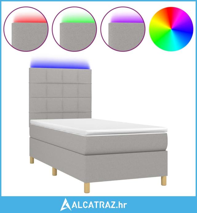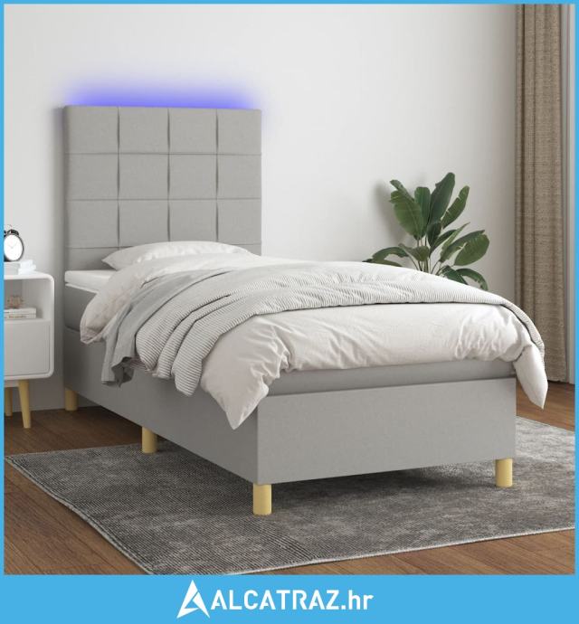 Krevet box spring s madracem LED svjetlosivi 100x200 cm tkanina - NOVO