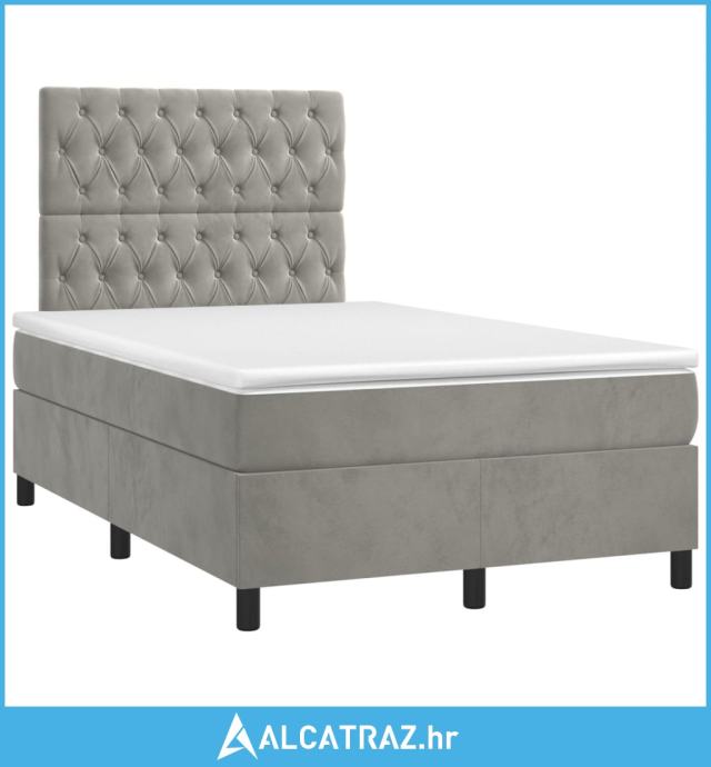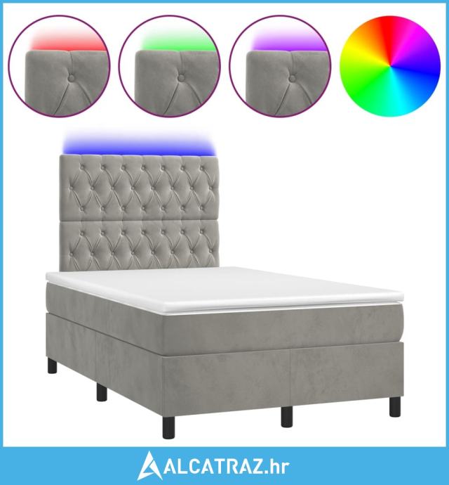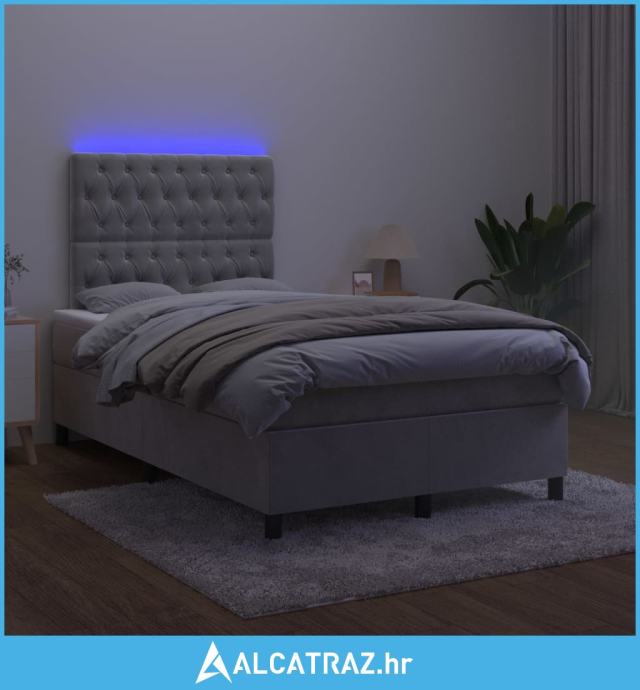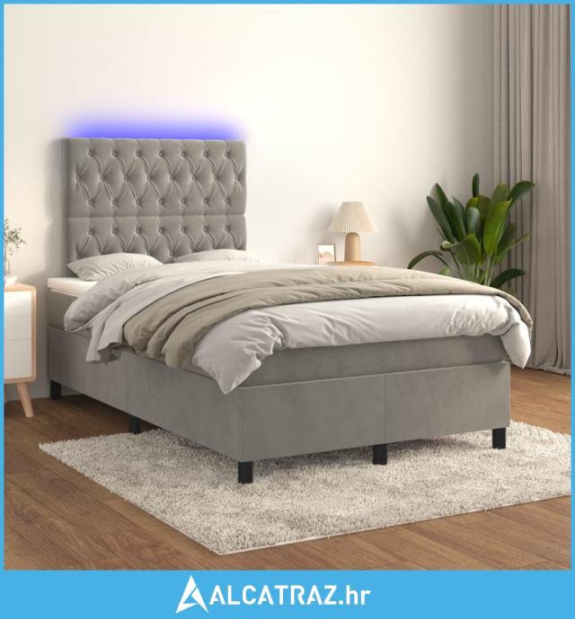Krevet box spring s madracem LED svjetlosivi 120x200 cm baršun - NOVO