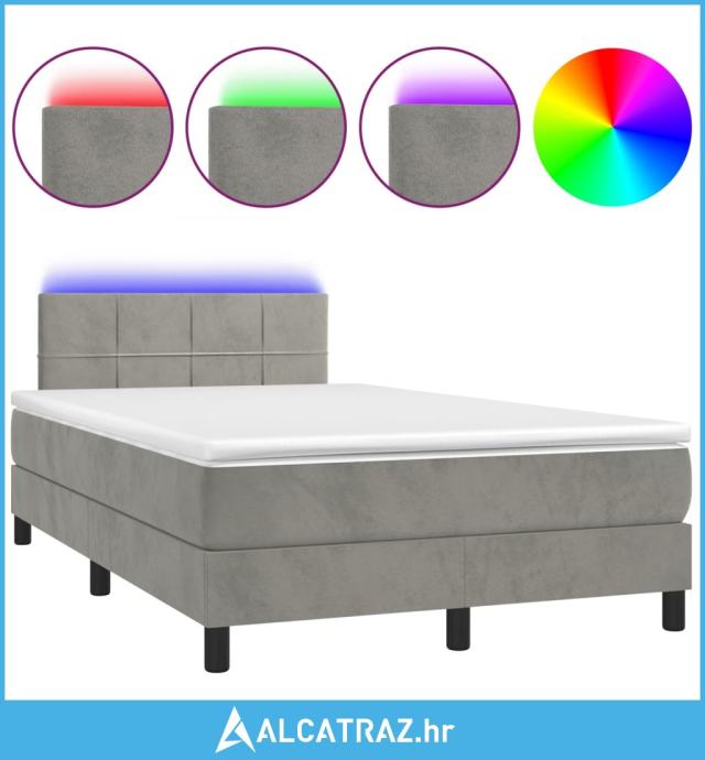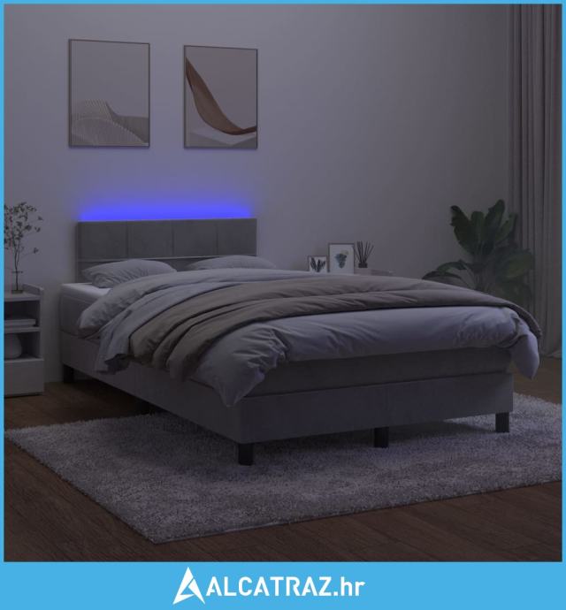 Krevet box spring s madracem LED svjetlosivi 120x200 cm baršun - NOVO