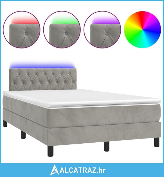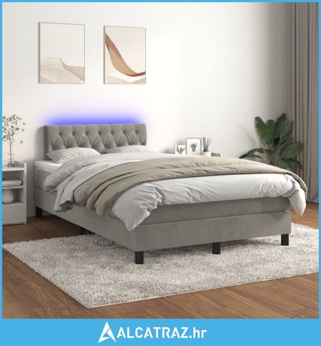 Krevet box spring s madracem LED svjetlosivi 120x200 cm baršun - NOVO