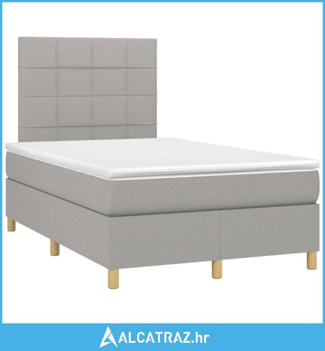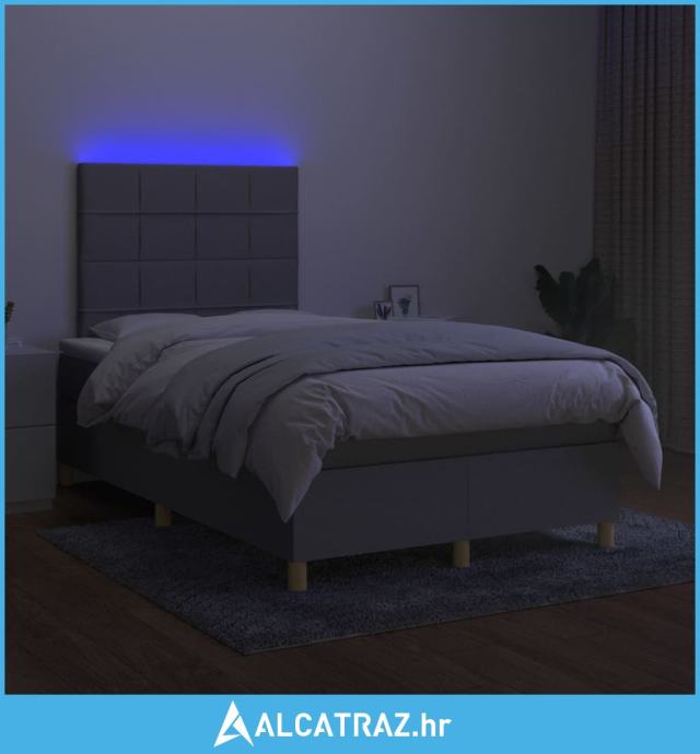 Krevet box spring s madracem LED svjetlosivi 120x200 cm tkanina - NOVO