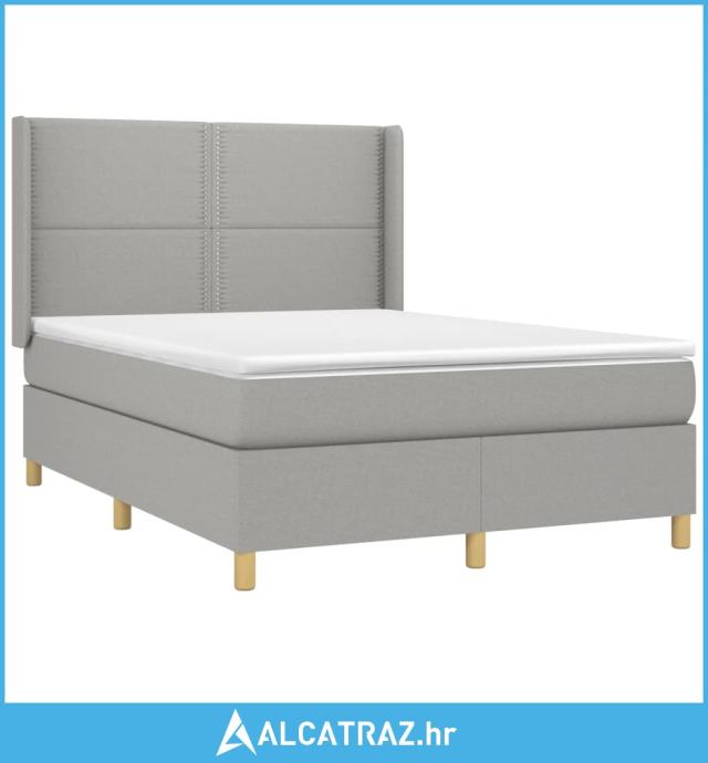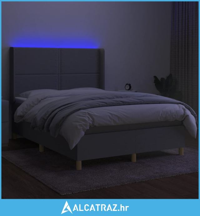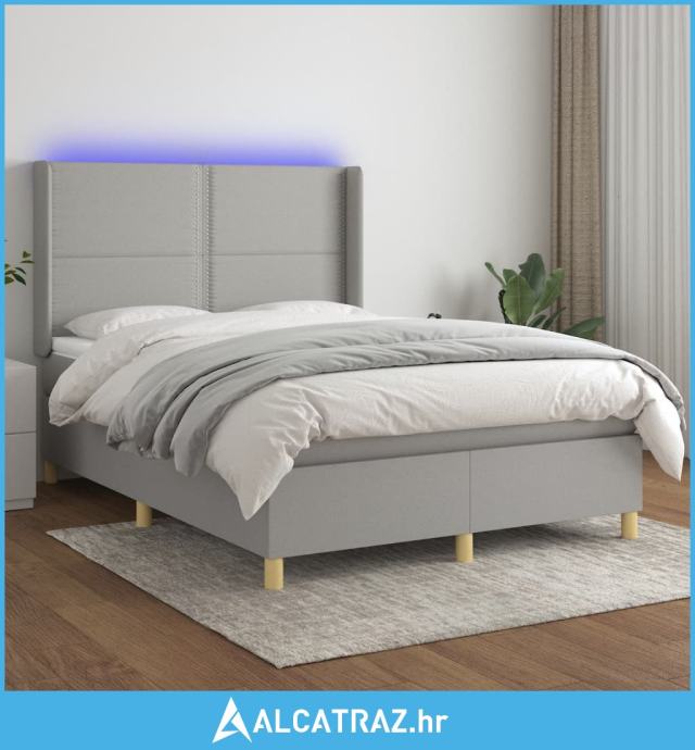 Krevet box spring s madracem LED svjetlosivi 140x190 cm tkanina - NOVO