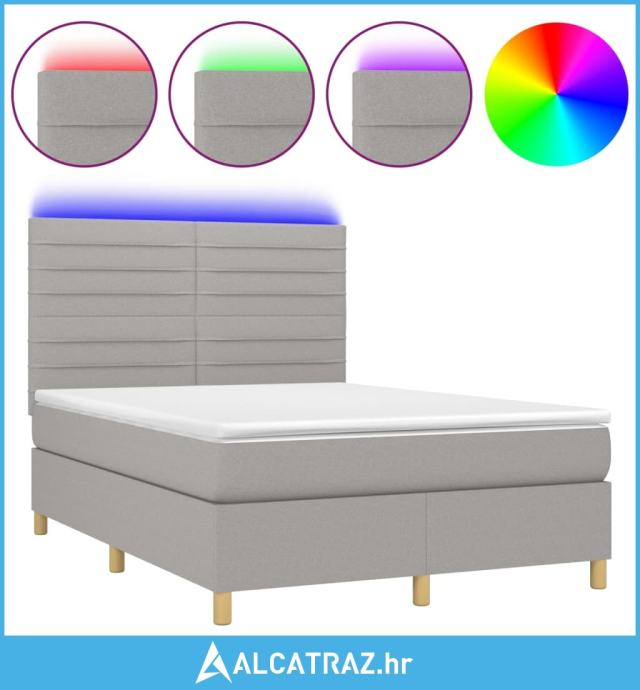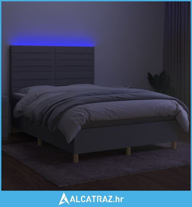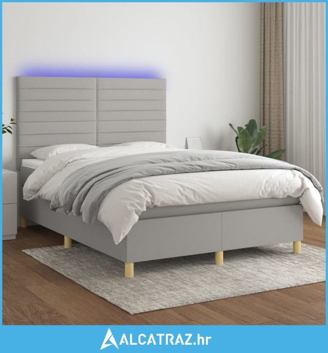 Krevet box spring s madracem LED svjetlosivi 140x190 cm tkanina - NOVO