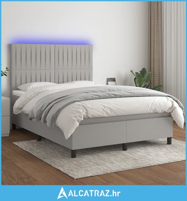 Krevet box spring s madracem LED svjetlosivi 140x190 cm tkanina - NOVO