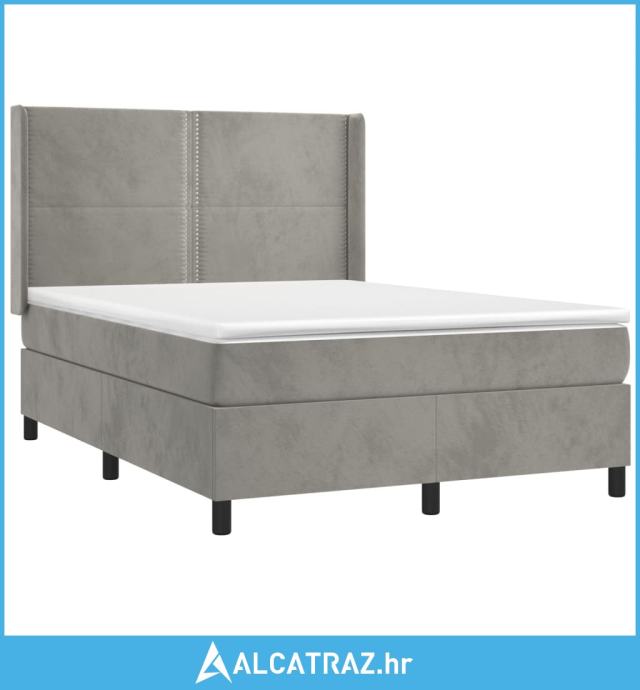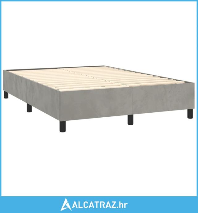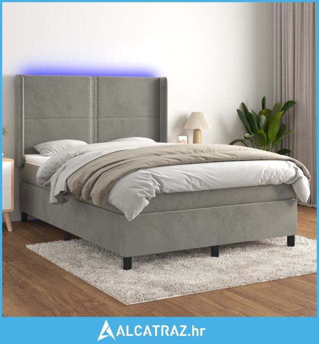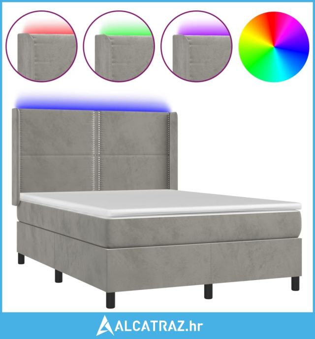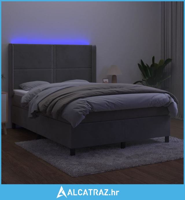 Krevet box spring s madracem LED svjetlosivi 140x200 cm baršun - NOVO