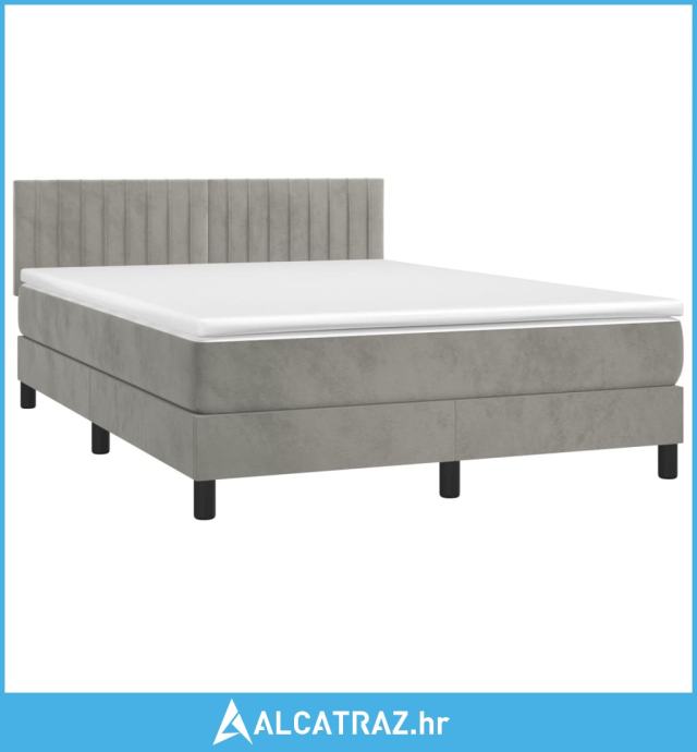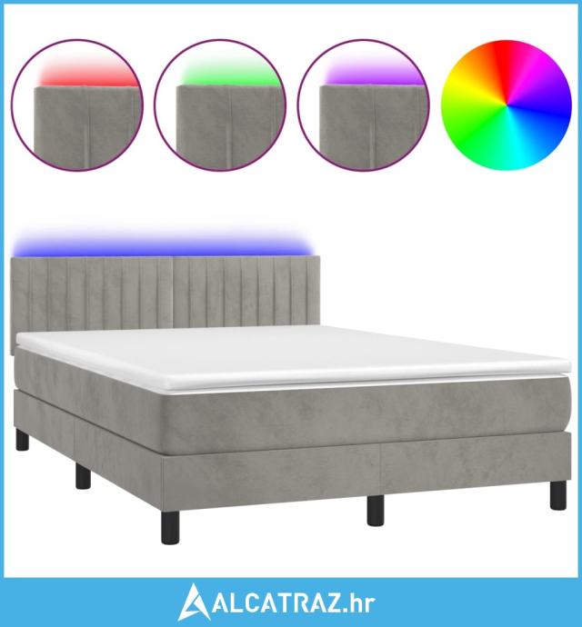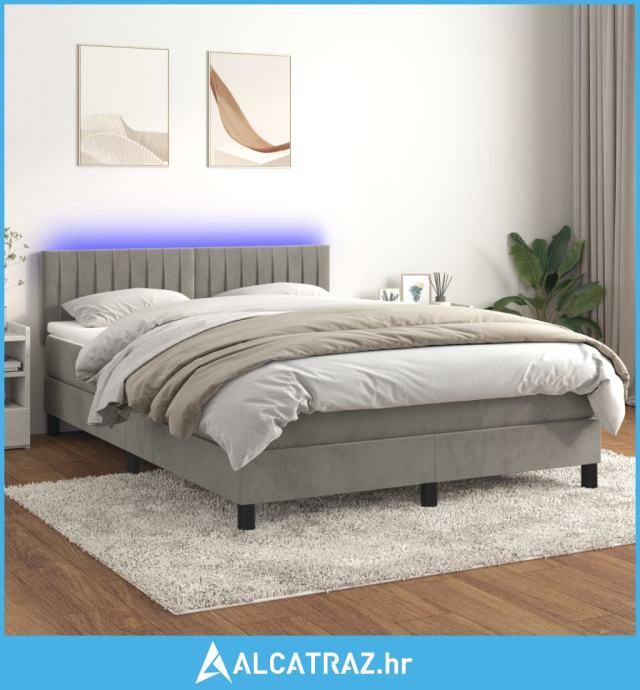 Krevet box spring s madracem LED svjetlosivi 140x200 cm baršun - NOVO