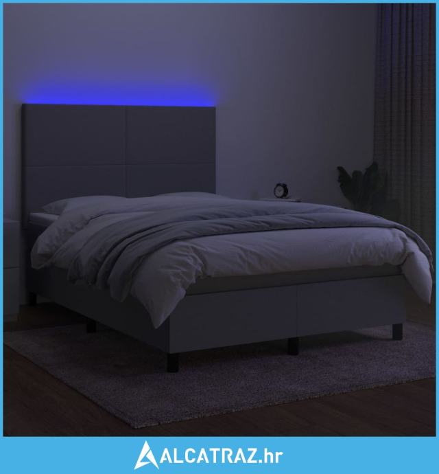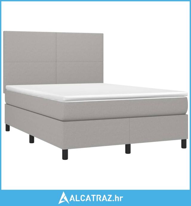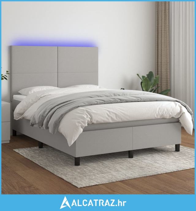 Krevet box spring s madracem LED svjetlosivi 140x200 cm tkanina - NOVO