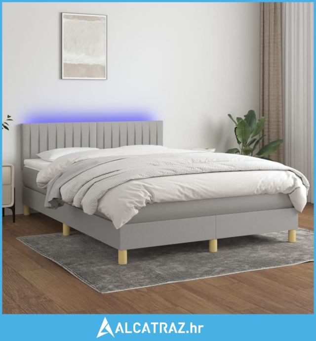 Krevet box spring s madracem LED svjetlosivi 140x200 cm tkanina - NOVO