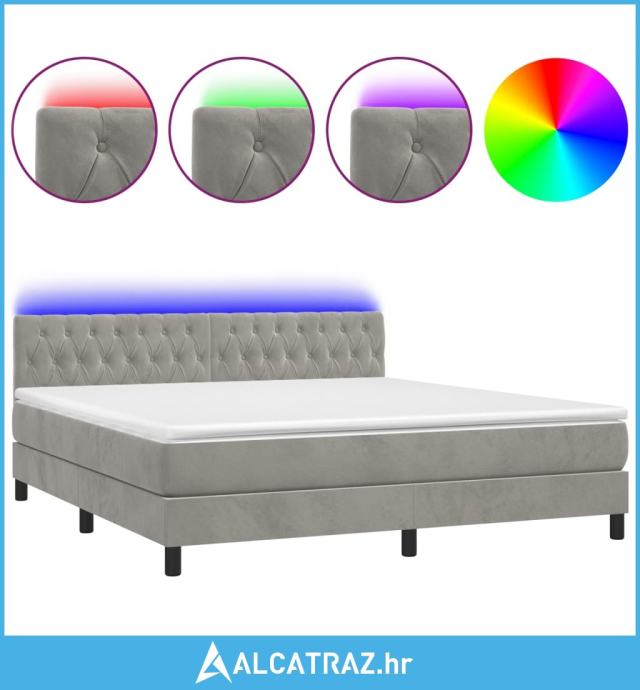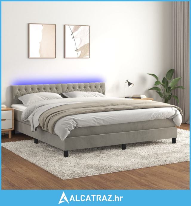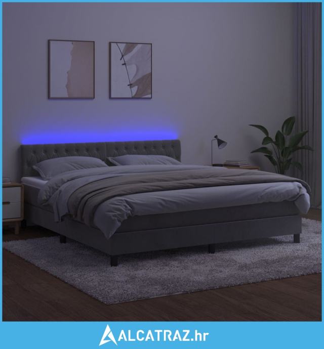Krevet box spring s madracem LED svjetlosivi 160x200 cm baršun - NOVO