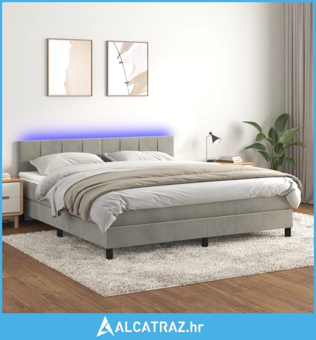 Krevet box spring s madracem LED svjetlosivi 160x200 cm baršun - NOVO