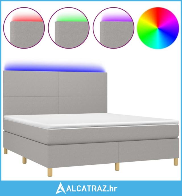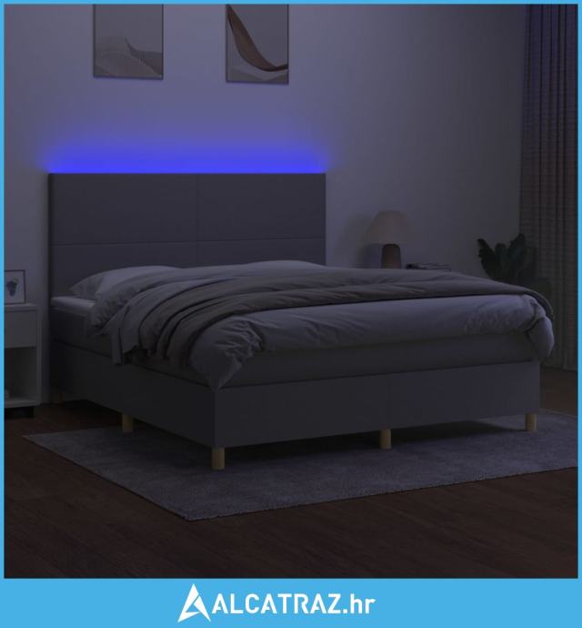 Krevet box spring s madracem LED svjetlosivi 160x200 cm tkanina - NOVO