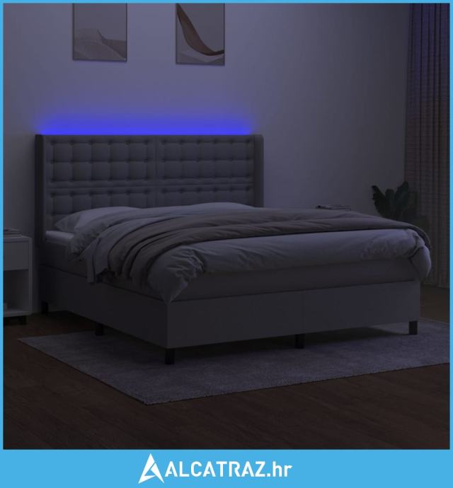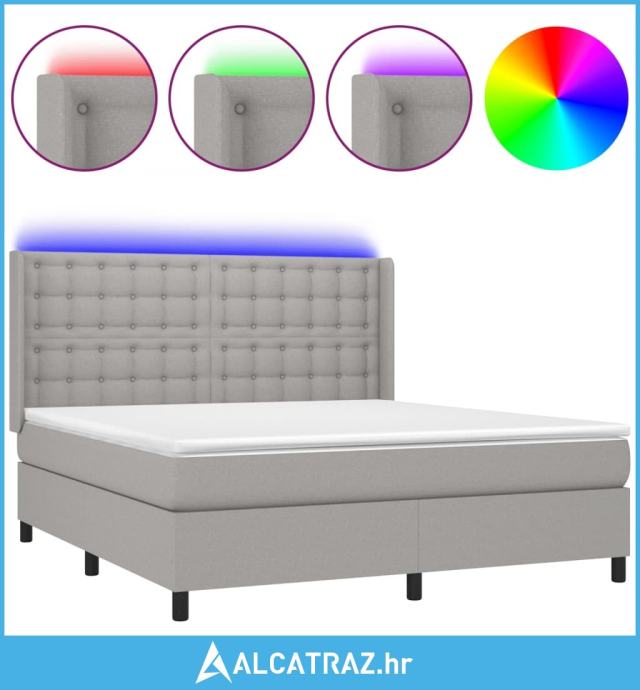Krevet box spring s madracem LED svjetlosivi 160x200 cm tkanina - NOVO