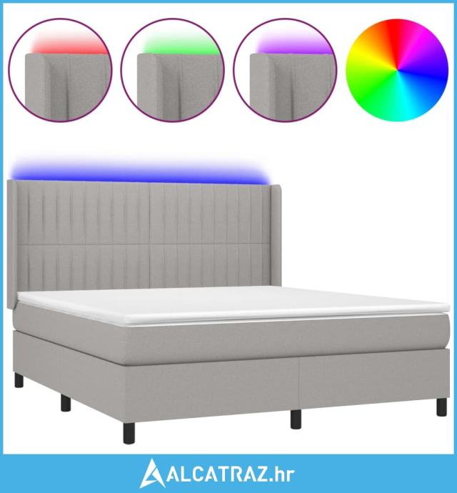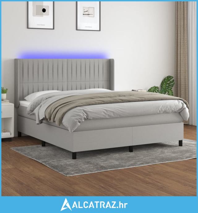 Krevet box spring s madracem LED svjetlosivi 160x200 cm tkanina - NOVO