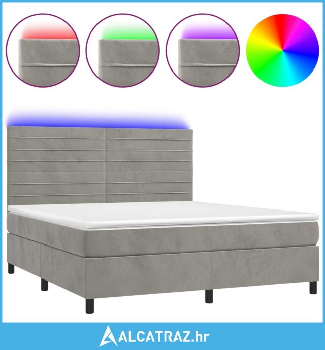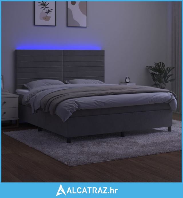 Krevet box spring s madracem LED svjetlosivi 180x200 cm baršun - NOVO