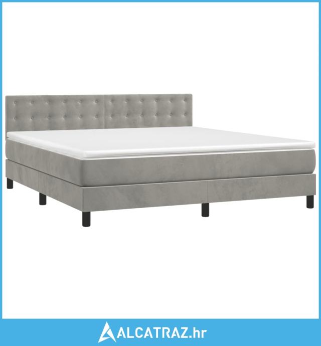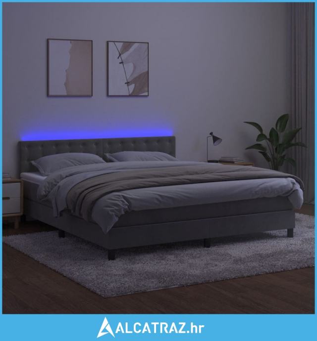 Krevet box spring s madracem LED svjetlosivi 180x200 cm baršun - NOVO
