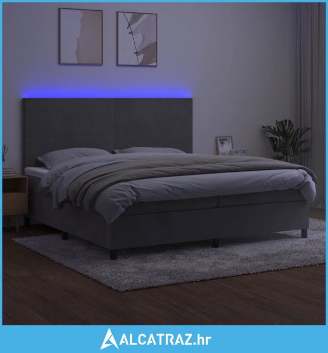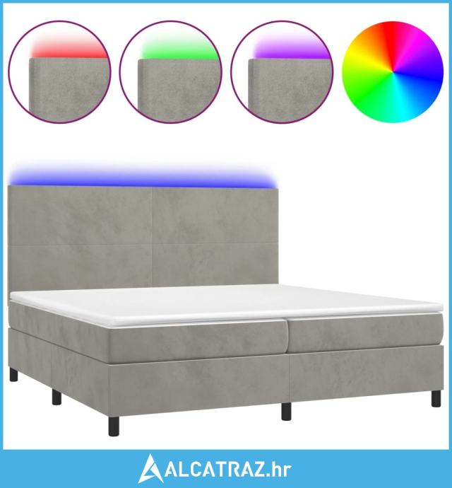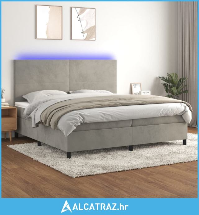 Krevet box spring s madracem LED svjetlosivi 200x200 cm baršun - NOVO