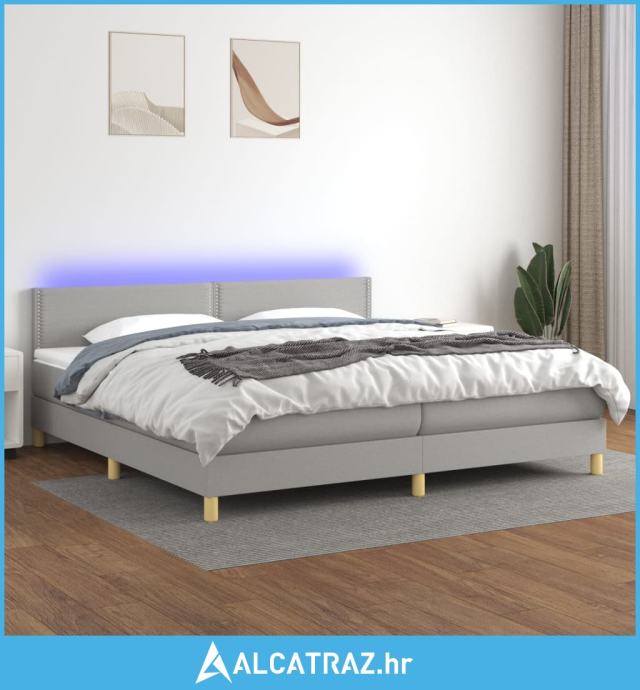 Krevet box spring s madracem LED svjetlosivi 200x200 cm tkanina - NOVO