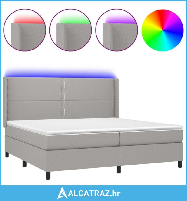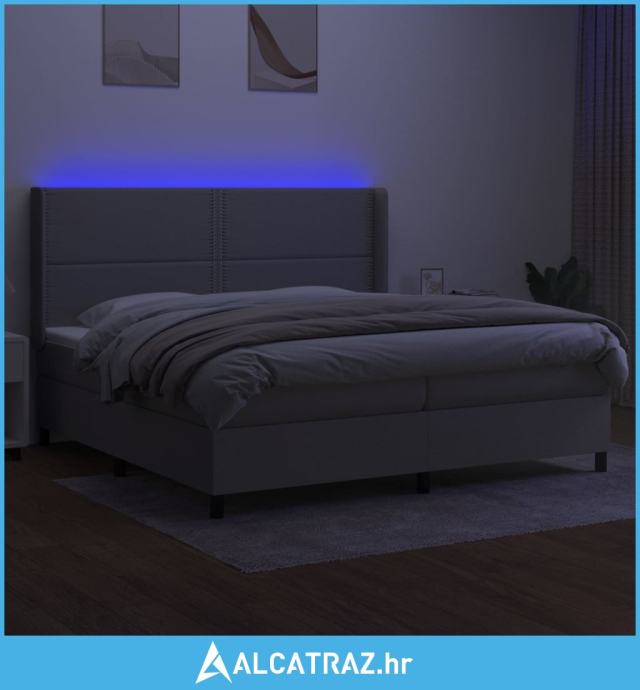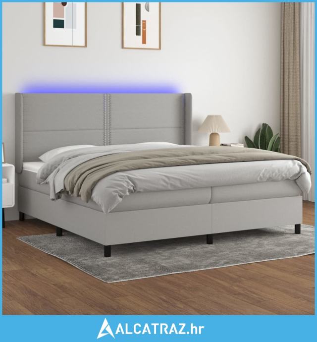 Krevet box spring s madracem LED svjetlosivi 200x200 cm tkanina - NOVO