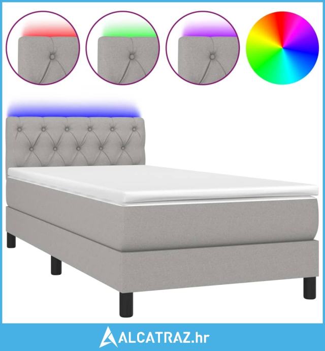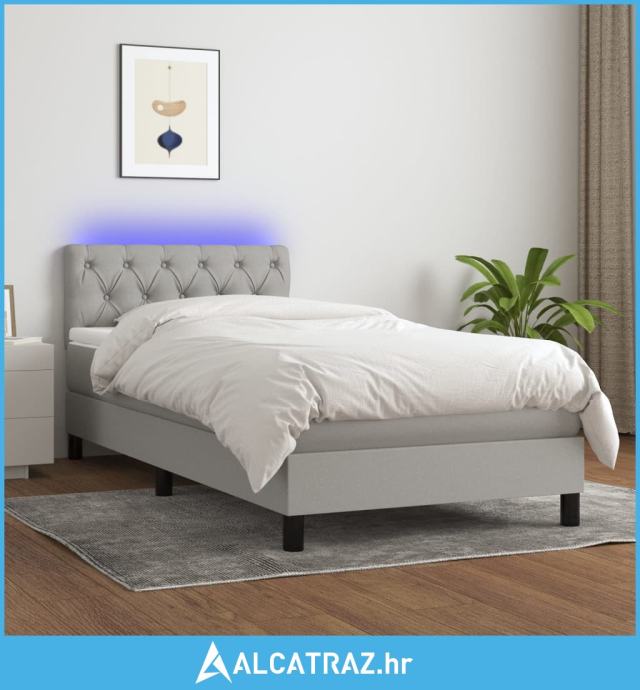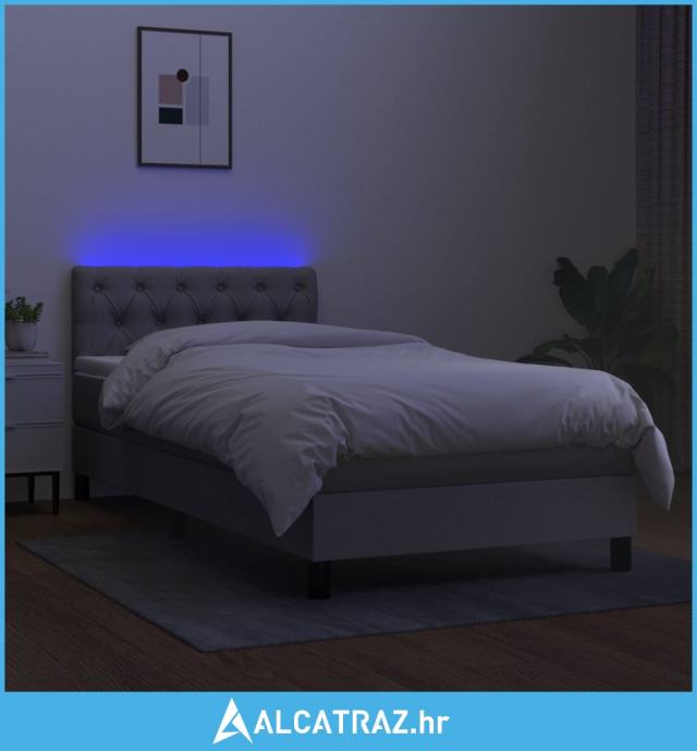 Krevet box spring s madracem LED svjetlosivi 80x200 cm tkanina - NOVO