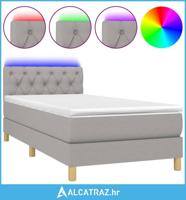 Krevet box spring s madracem LED svjetlosivi 80x200 cm tkanina - NOVO