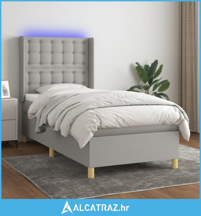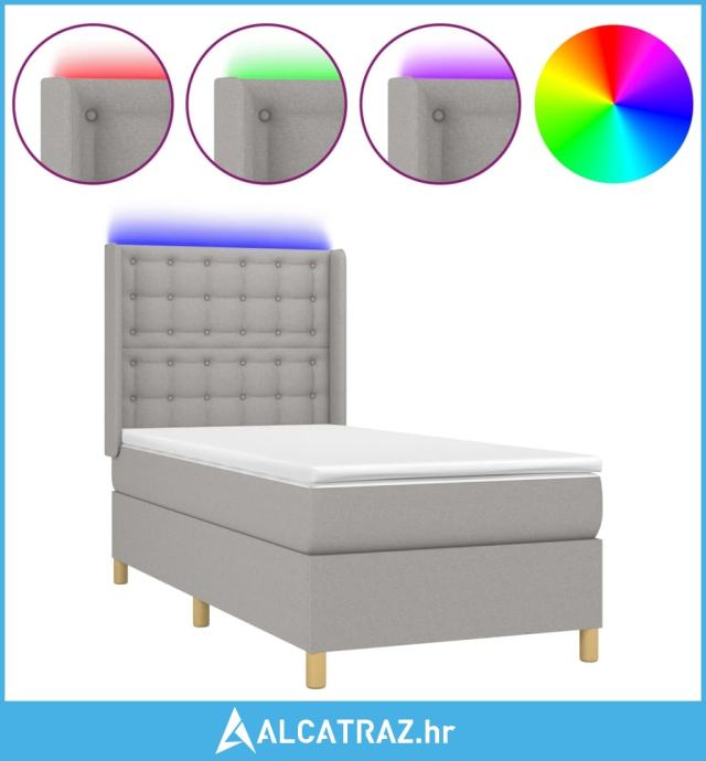 Krevet box spring s madracem LED svjetlosivi 80x200 cm tkanina - NOVO