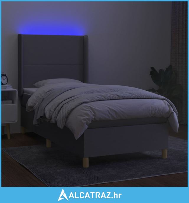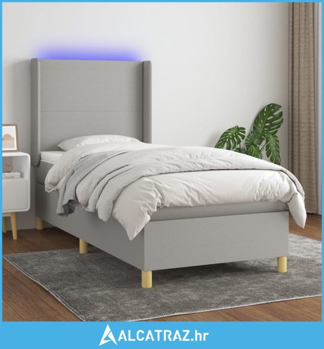 Krevet box spring s madracem LED svjetlosivi 80x200 cm tkanina - NOVO