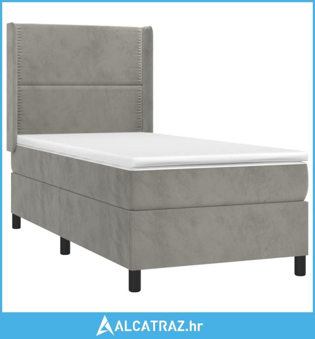 Krevet box spring s madracem LED svjetlosivi 90x190 cm baršun - NOVO