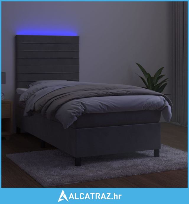 Krevet box spring s madracem LED svjetlosivi 90x190 cm baršun - NOVO