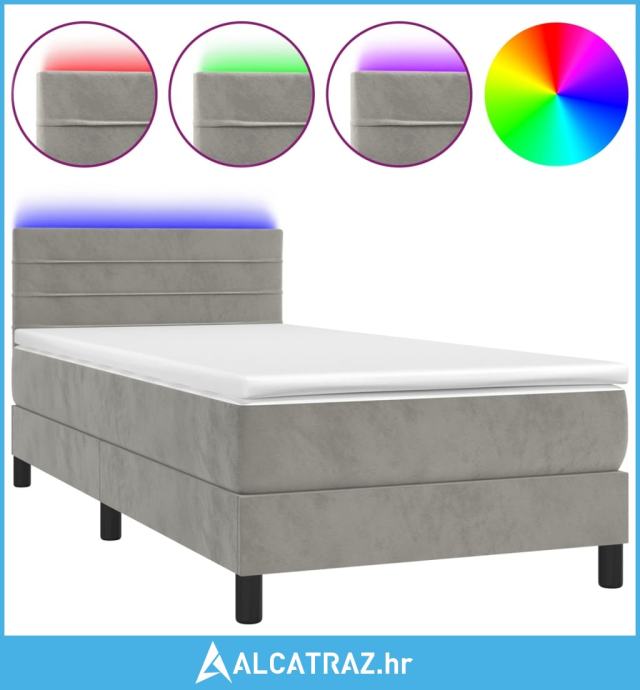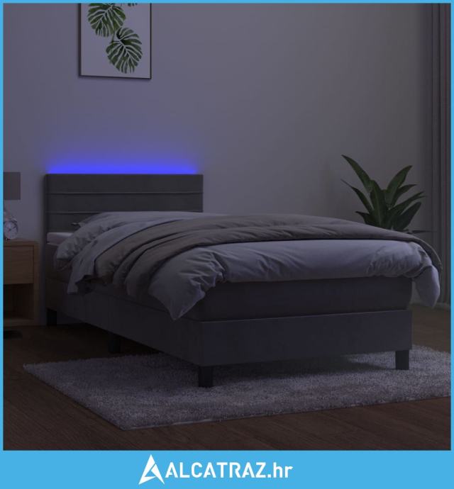 Krevet box spring s madracem LED svjetlosivi 90x190 cm baršun - NOVO