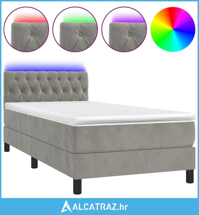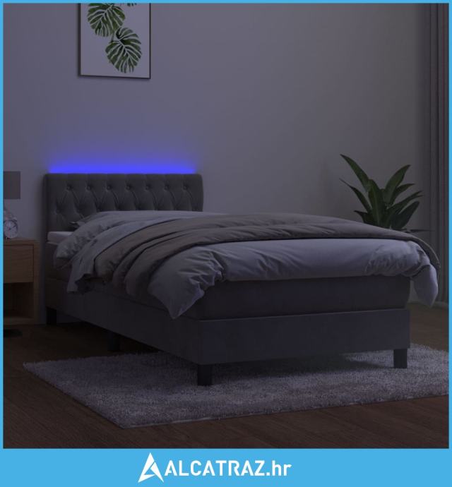 Krevet box spring s madracem LED svjetlosivi 90x190 cm baršun - NOVO