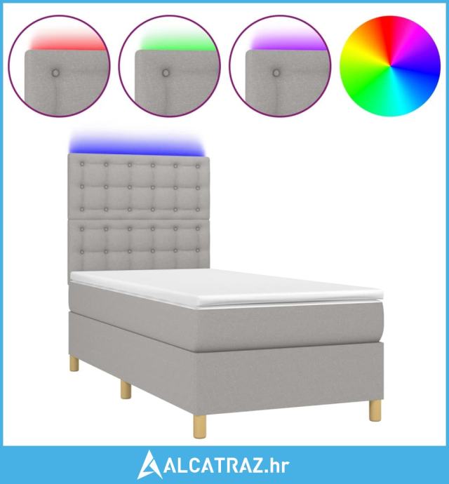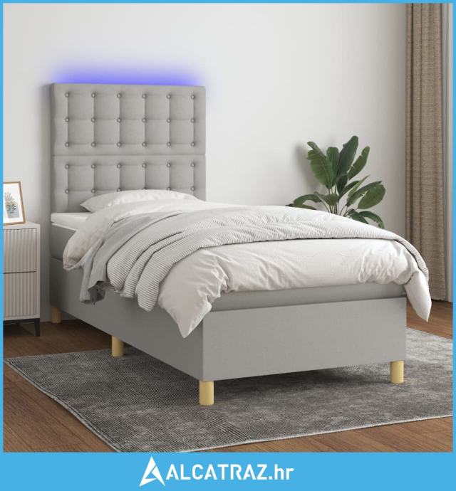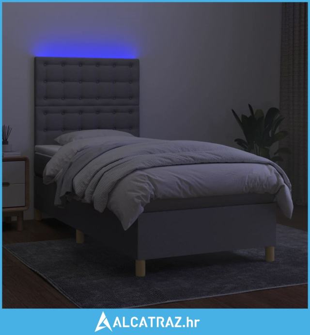 Krevet box spring s madracem LED svjetlosivi 90x190 cm tkanina - NOVO